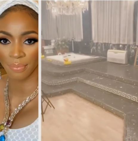 Billionaire wife, Shade Okoya, shared a video of her bathroom online today and social media users can't stop talking about how huge and beautiful it is.