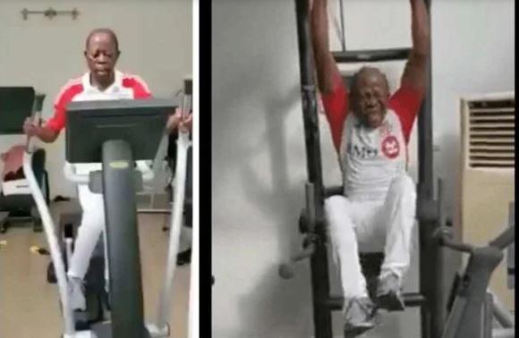 APC National chairman, Adams Oshiomhole, has been spotted in a now viral video hitting the gym, amidst the recent coronavirus outbreak.