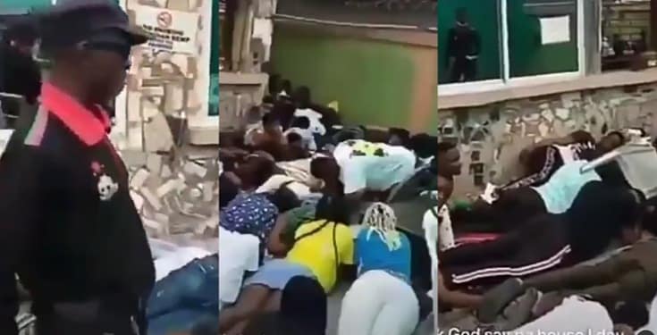 In the video below, the defaulters could be seen lying face down with security operatives beside them.
