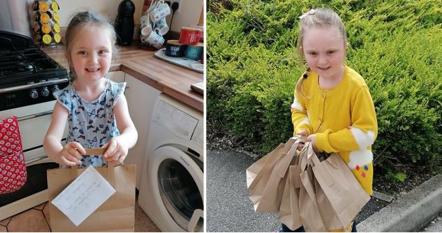 A selfless five-year-old girl has gained plaudits after she hand-delivered more than 1,000 goody bags packed full of her own toys to key health workers and children during the Coronavirus imposed lockdown.