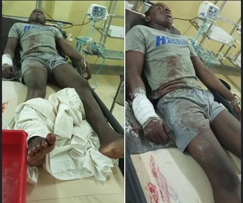 SARS officers are very cruel and in human, the officer that shot Sadiq was looking like a hoodlum, with is tattered hair style and chains hanging around his neck, if any one can help us raise the alarm until it reaches the ears that needs to hear and Justice is given to Sadiq it will be appreciated, pls help us share until it reaches the ears that need to hear... This is Sadiq's picture at the trauma Centre in National Hospital Abuja...''