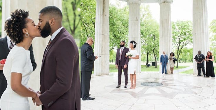 A Nigerian man, Anthony Esho has in front of five persons wedded his Jamaican wife, Simone Isaacs at the Washington D.C. War Memorial park in the U.S.