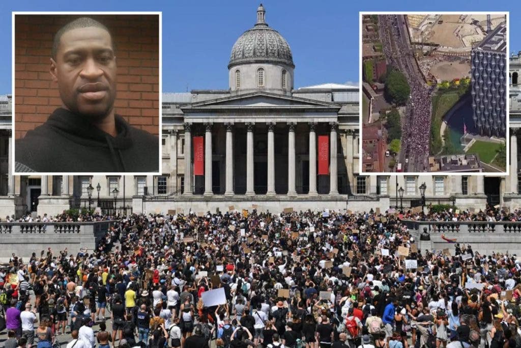 The protests have been held at Trafalgar Square and outside the US Embassy in Battersea, south London, chanting “say his name: George Floyd” and “no justice, no peace, no racist police”.