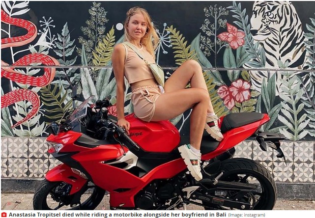 A Russian model and Instagram sensation, Anastasia Tropitsel, 18, has died after suffering head injuries when she lost control of her Kawasaki motorbike and crashed into a fence on the Indonesian island of Bali.