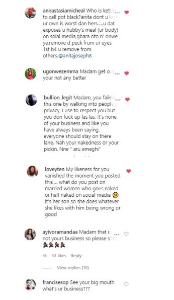 Who is kettle to call pot black?anita dont u knw ur own is worst dan hers…..u dat exposes u hubby’s meal (ur body) on soial media,gbara oto n’ onwe ya.remove d peck from ur eyes 1st b4 u remove from others.@anitajoseph8