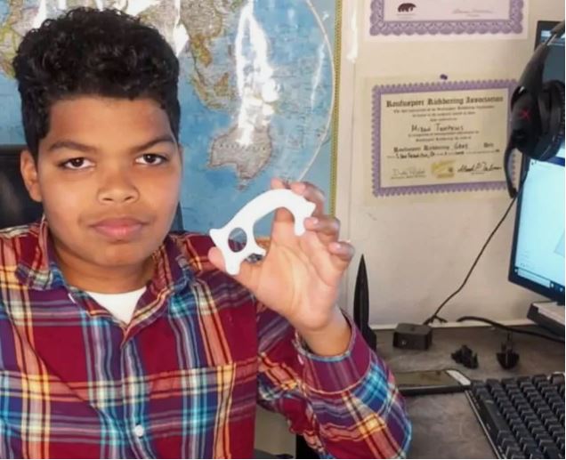 Mizan Rupan-Tompkins from San Francisco in a bid to prevent his parents from contracting the deadly coronavirus, invented a handle that allows for contact-free interaction with surfaces such as doors and buttons. His invention was made possible using a 3D printer.