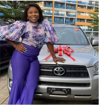 "This is your birthday gift from your godmothers, family, and friends. this was supposed to be on your birthday but for some reason. but you know what? God always saves the best for the last," the woman who presented the car to her said as Bolanle stood awestruck.
