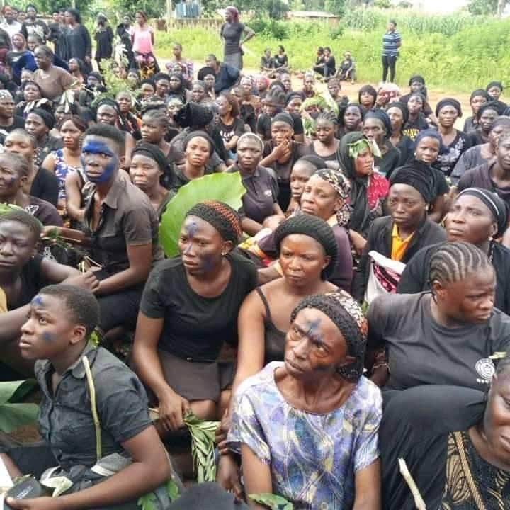 Some of the protesting women wore black cloths in the protest that terminated at the palace of Atak Njei, Agwamatyap Palace (Sarkin Atyap palace) of Zangon Kataf local government area of Kaduna State.