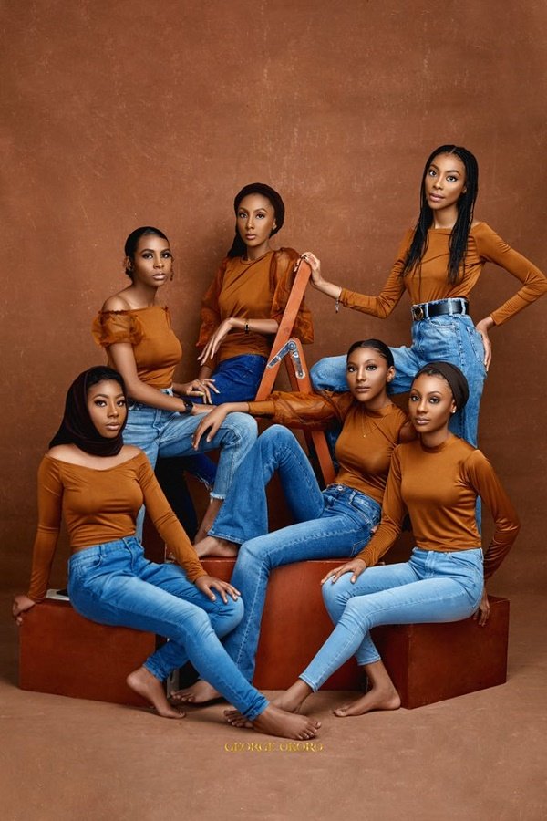 In the pictures released on Thursday evening via the Twitter handle of Munah el-Rufai, one of the sisters, the five beautiful siblings can be seen barefooted and dressed in blue jean trousers and brown long-sleeve blouse.