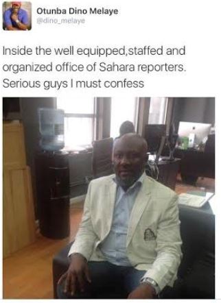 According to his post on Facebook, he said "Inside the well equipped, staffed and organized office of Sahara reporters. Serious guys i must confess"