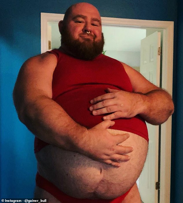 Bryan, who goes by the name Gainer Bull, began gaining weight more than 20 years ago and started 'bulking up' his stomach.
