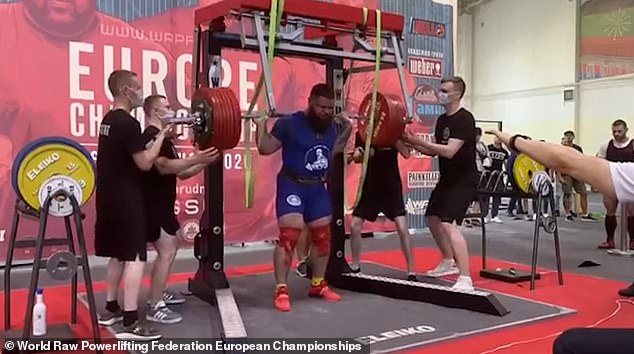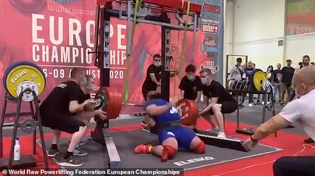 Last year, a similar injury beset a weightlifter as he tried to squat a lesser 250kg (550lb) during a competition in Russia.