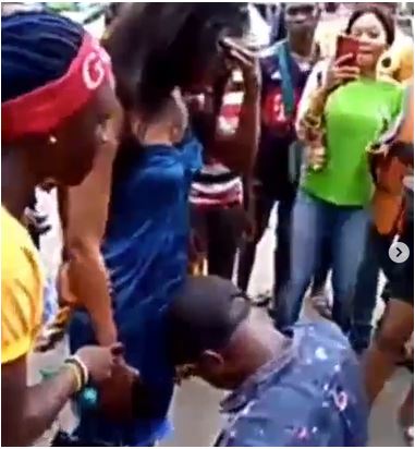 His action caused a scene and made people gather to plead with the girl to say yes. Some even lost patience with the girl when she refused to accept the proposal.