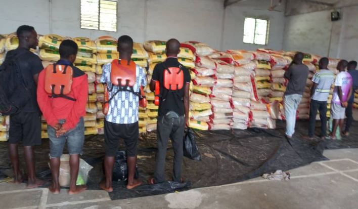 Among the suspects arrested for smuggling 1,522 bags of foreign bags of rice is a 16-year-old boy. Commander of NNS Victory, Commodore Idi Abbas said the suspects were arrested in two batches.