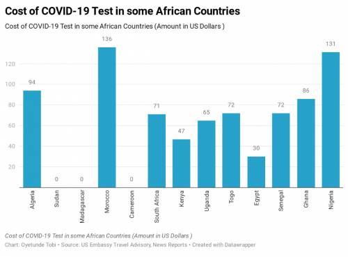 Kenya runs the test for $47 while with $94, an individual will be tested for COVID-19 in Algeria.