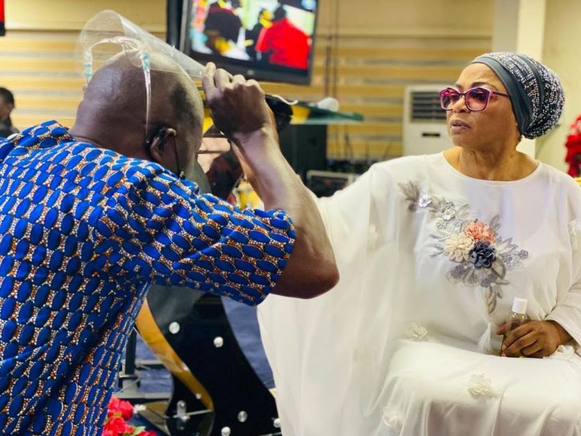 Nigerian billionaire businesswoman, Folorunso Alakija was pictured anointing her church members during an 'anointing service' held on Tuesday, September 15, at the Rose of Sharon Glorious Ministry International in Surulere, Lagos.