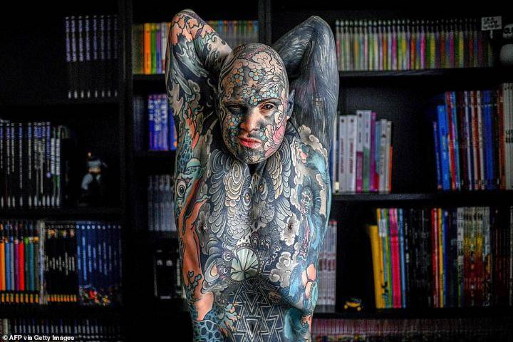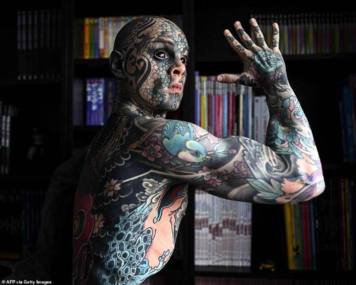A French primary school teacher has been banned from teaching at a kindergarten school after spending £35,000 (N17.3m) covering his body in tattoos.
