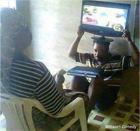This picture of a wife who belongs to the Nigerian military dealing with her erring civilian husband will crack your ribs.