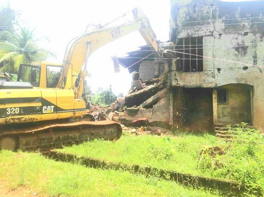 Officials of the Physical Planning Board visited the site on Wednesday, September 30, with earth moving equipment and pulled down the building.