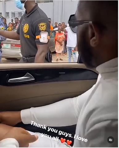 Some tried to reach too close to the car but were stopped by security operatives on foot who were guarding Kiddwaya's car.