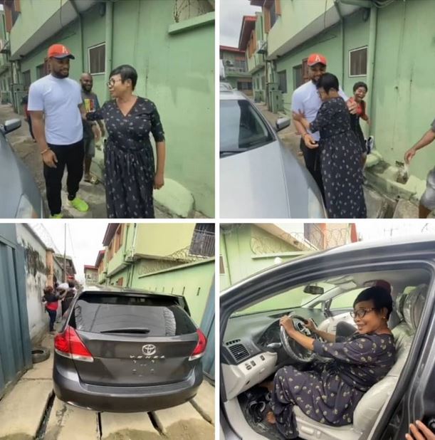 The actor shared videos of him presenting the car to his mum who couldn't contain her joy as she received the car gift from her son.