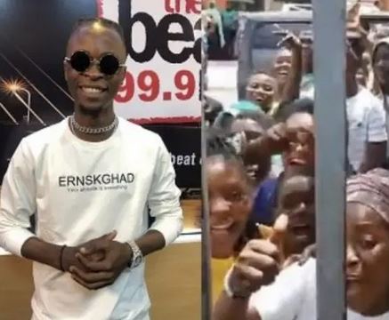 Excited Fans of Big Brother Naija season 5 winner, Laycon, stormed Beat FM office, Lagos to get a glimpse of their iconic president.