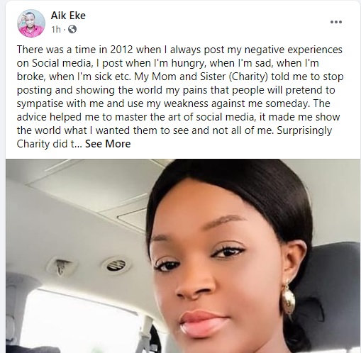 There was a time in 2012 when I always post my negative experiences on Social media, I post when I'm hungry, when I'm sad, when I'm broke, when I'm sick etc. My Mom and Sister (Charity) told me to stop posting and showing the world my pains that people will pretend to sympatise with me and use my weakness against me someday. The advice helped me to master the art of social media, it made me show the world what I wanted them to see and not all of me. Surprisingly Charity did the unexpected on Saturday morning with the viral video but I paused and thought "What if she did not break the rule? What if she only wanted the world to see a bit of what she wants to show them." She said and I quote "I'm Done, I'm not crazy, you'll hear from me soon".