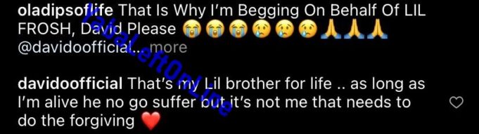 Oladips took to Instagram and said Davido needs to find a place in his heart to forgive lil frosh.