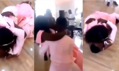 At a point, the excited groom decided to take the bold step of carrying his chubby wife on his arms, but they crashed down to the floor, in front of their wedding guests and pastor.