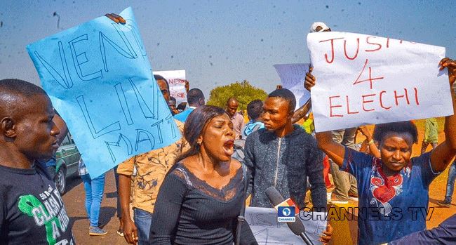 The vendors have taken to streets to protest the killing of one of their colleagues, Ifeanyi Okereke Elechi.