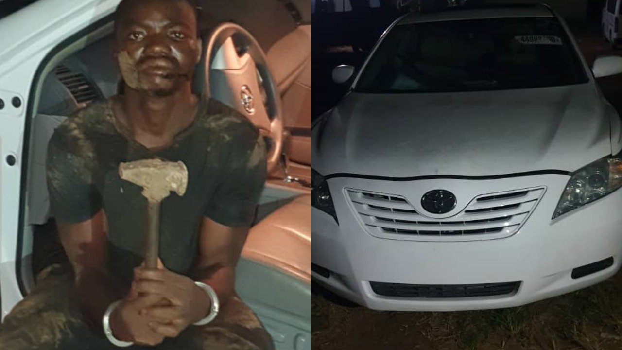 “The effort paid off when one of the robbers, Alo Monday, was apprehended with a sledgehammer which he used to hit the owner of the car on the head before snatching the vehicle.