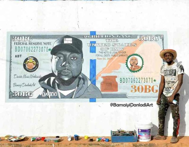 A painting of Davido on a dollar bill has left the superstar musician excited.