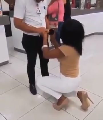 Moment Lady Bends The Knee, Proposes To Boyfriend at His Workplace (Video)