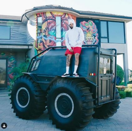 RnB singer, Chris Brown took to Instagram to show off a luxury tank truck gifted to him by controversial rapper and Presidential aspirant, Kanye West.