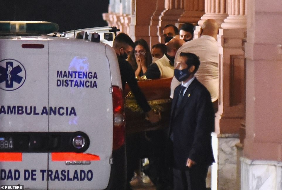 As a crowd of weeping fans gathered outside, Maradona's coffin was lifted out of an ambulance and brought into the palace where it will lie in state in a three-day spectacle of national mourning.