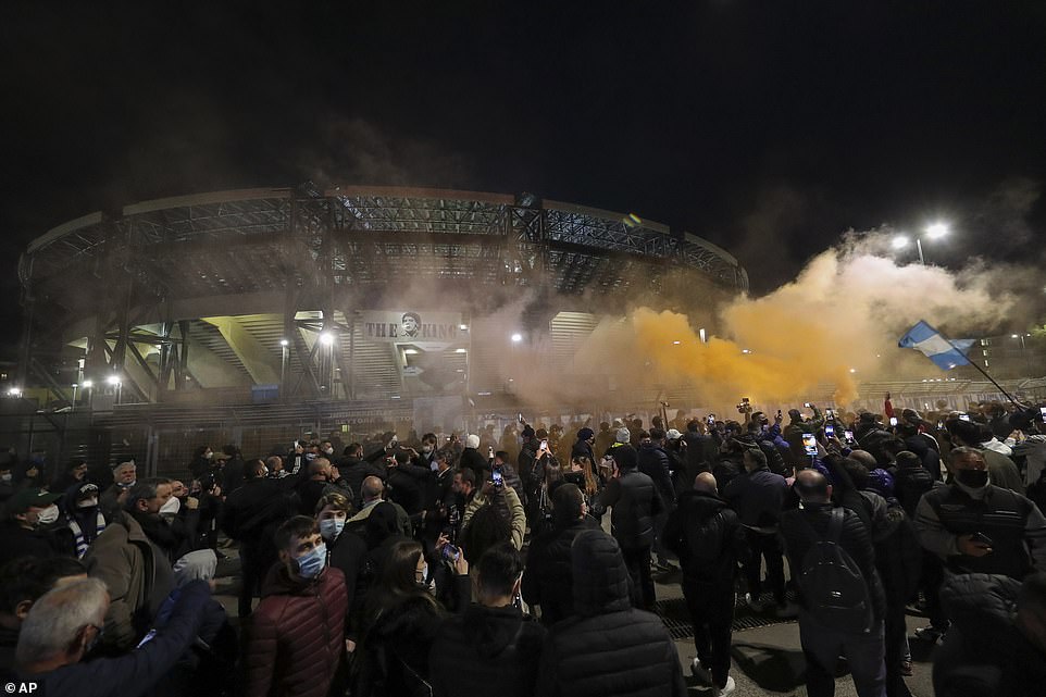 His death has also been keenly felt in Europe, especially in Naples where he steered an unfashionable side to two Italian league titles and where fans let off flares in tribute outside the stadium last night.