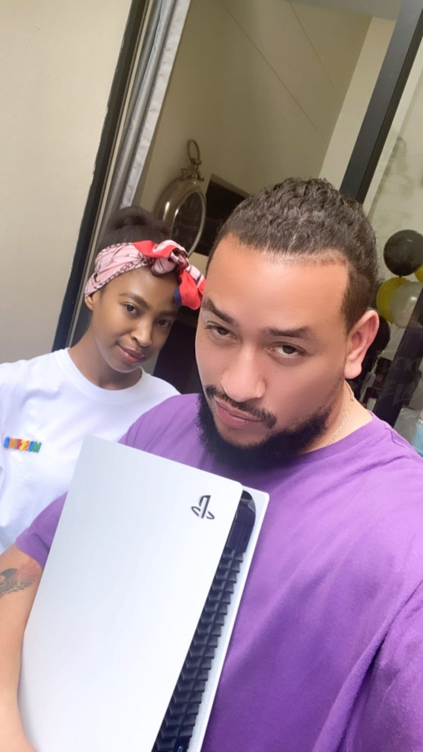 South African rapper, AKA couldn't contain his happiness after his girlfriend, Nelli Tembe surprised him with PS5.
