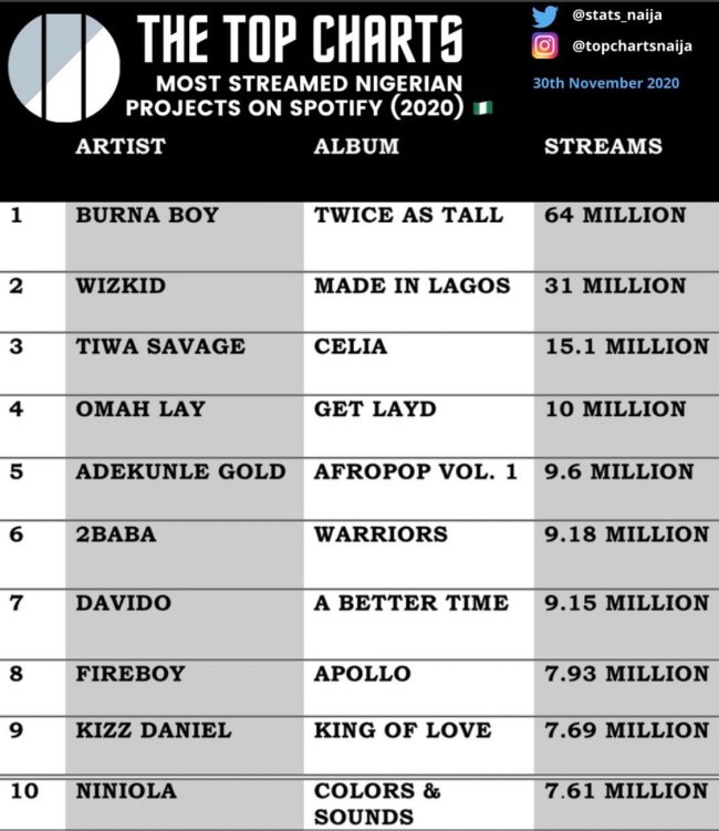 This comes after Twice As Tall secured the Number 1 spot on the most streamed African album on Spotify in 2020 with over 64 million streams to its credit.