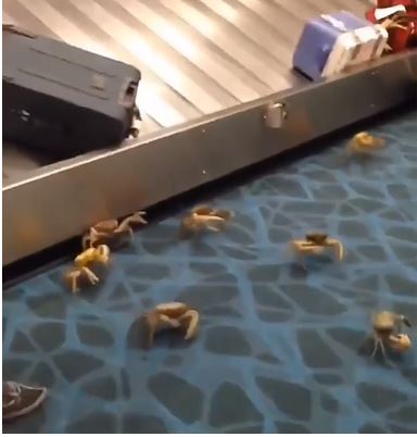 Many travelers were in for a surprise at the airport when live crabs poured out of the woman's bag after their flight landed.