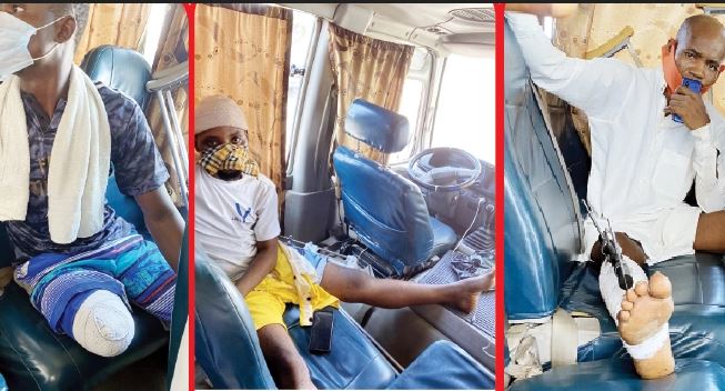 Some of the injured persons, who were brought to the LCA in a white bus, had plaster of Paris cast on their legs and arms and bandages wrapped on their heads and chests.