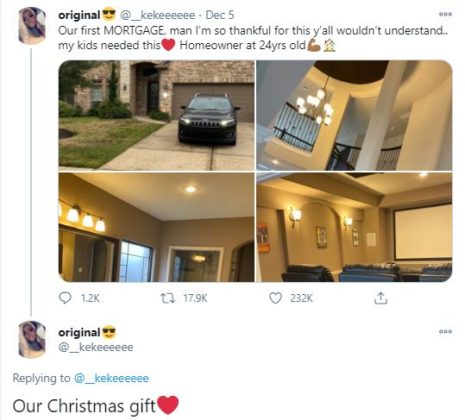 “Our first MORTGAGE, man I’m so thankful for this, y’all wouldn’t understand. My kids needed this. Homeowner at 24 years old.”