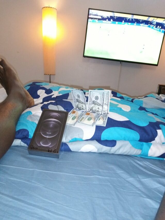 Nigerian Man Wakes Up To See New iPhone And Cash Gift In Dollars From His Girlfriend (Photos)