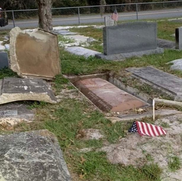 They raided four graves and tried to access a fifth at a site in Florida, US on Sunday.