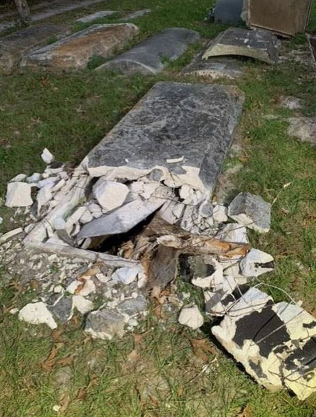 A driver was passing the cemetery when she noticed a disturbed tomb stone, US media reported.
