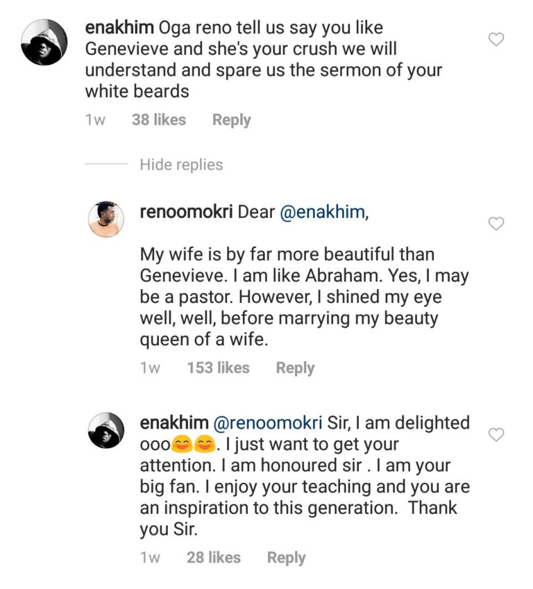 “Dear enakhim, my wife is far more beautiful than Genevieve. I am like Abraham. Yes I may a pastor. However, I shined my eye well, well, before marrying my beauty queen of a wife”.