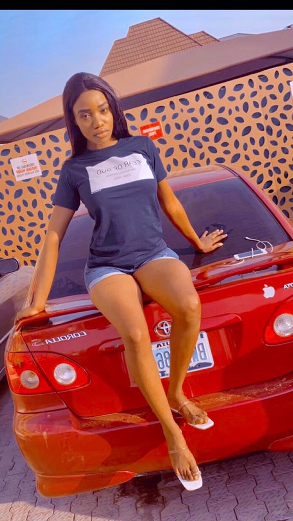She called on her Twitter followers to thank Don Jazzy on her behalf as she shared photos of herself posing with the car she claims to have recently acquired.