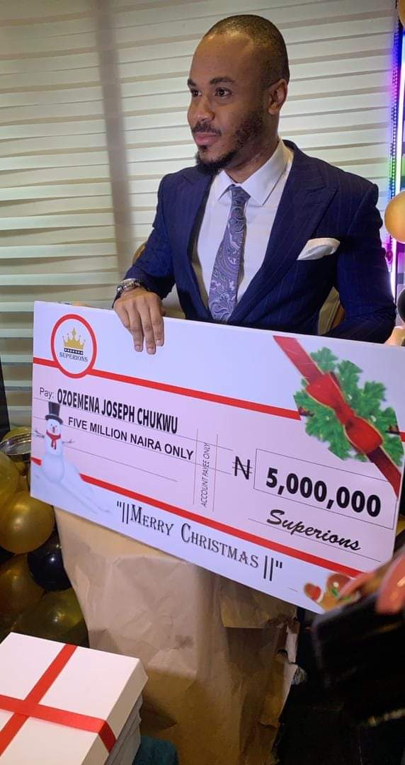 This comes after loyal fans of the reality star gave him a cheque of N5million naira to enable him celebrate Christmas in grand style.