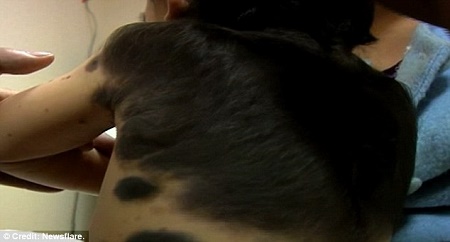 As he grew, so did the moles on his skin, which soon became rough and fury. When the boy was taken to a specialist hospital in Leshan, they were told by a doctor called Zhing Yi that the child was suffering from the congenital skin disease, and the chances of this happening to a newborn baby are one in two million. In Chinese, the disease is translated as ‘beast skin mole’ (shou pi zheng).