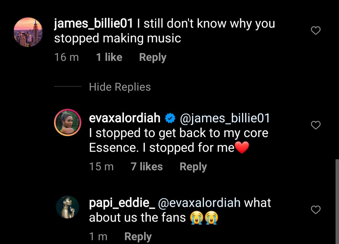 "I still don't know why you stopped making music," the fan commented on her latest post.
