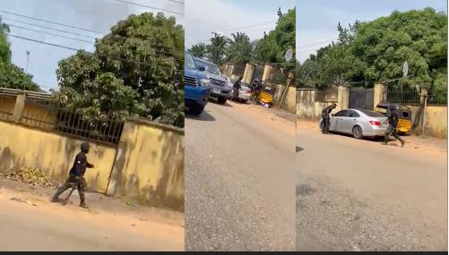 SaharaReporters obtained a video made by some of the eyewitnesses where three armed policemen were seen around the victim, lying on the ground and writhing in pain.
